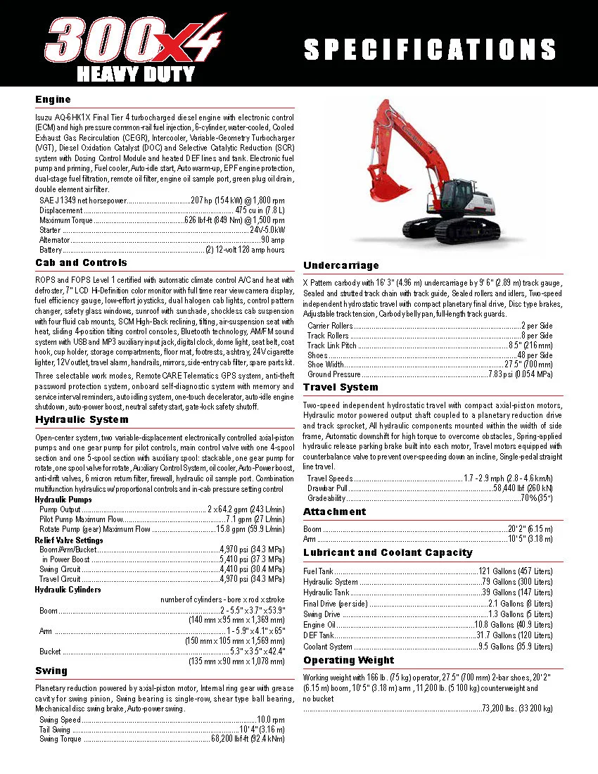 The Link-Belt 300 X4 Heavy Duty excavator is factory equipped with a high-wide and heavy-duty undercarriage with larger components for added durability, strength, and performance. Compared to our standard excavators, these models have an 11-17% wider stance and 40-50% higher ground clearance giving them excellent stability and increased lift capacities to handle the rugged work they were designed for.